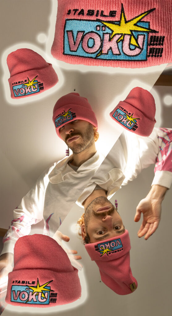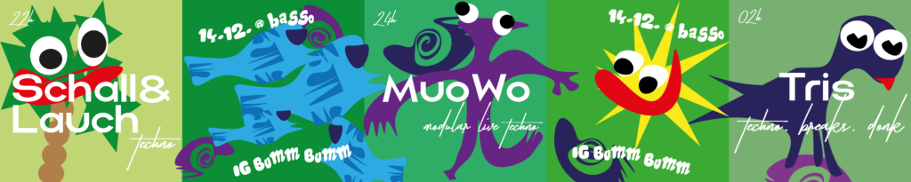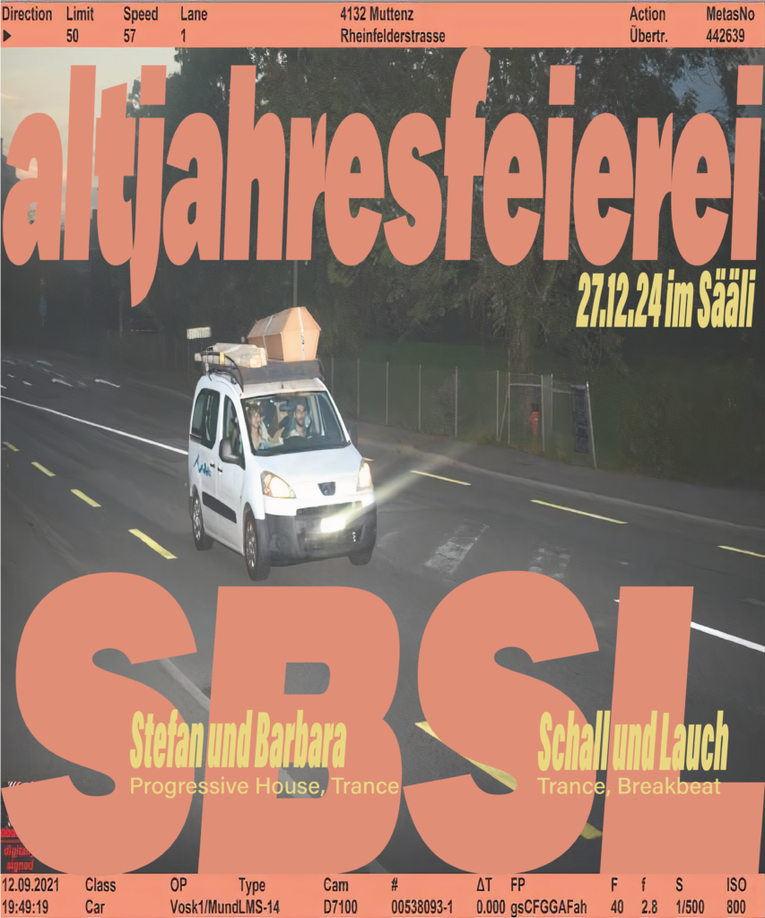 Neben Sticker müssen auch andere Formate dranglauben. Oft Flyer, meist für eigene Veranstaltungen. Können tu ich alles, auch Printsachen, Signaletik, Raumgestaltungen, T-Shirts, Mützen, Caps …